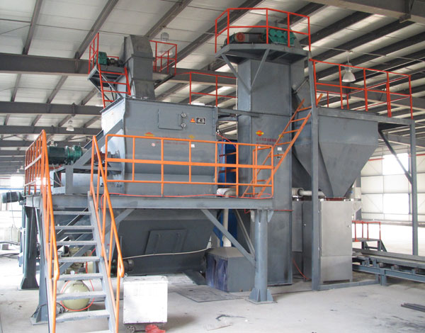 主要配置:斗式提升机、预混仓(选配)、无重力高效搅拌机(配飞刀)、成品提升机、全自动计量包装机、除尘器(选配)、电器控制柜等组成。